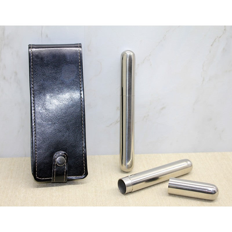 Deri Kılıflı Paslanmaz Çelik Puro Kabı