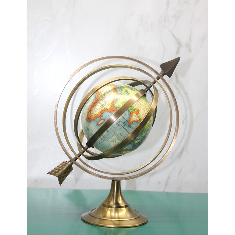 Zarif bir tasarıma sahip olup, şık ve estetik bir objedir. Küre, pirinç malzemeden üretilmiş ve ok yönüyle çevrelenmiştir, modern ve klasik tasarımı birleştirir. 24x20 cm boyutundadır ve ofislerde ya da evlerde dekoratif amaçla kullanılabilir. Küre üzerindeki dünya haritası detayları, bu ürünü hem fonksiyonel hem de dekoratif bir parça yapmaktadır.