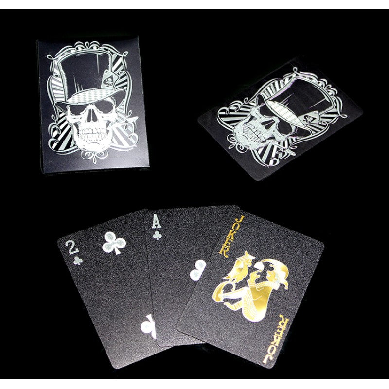 Özgün tasarımıyla dikkat çeken kuru kafa oyun kartı, gotik ve karizmatik bir tarz sunmaktadır. Siyah zemin üzerine altın ve beyaz detaylarla işlenmiş özel tasarım kartlar, oyun deneyiminize farklı bir hava katmaktadır. Kaliteli malzemeden üretilmiş olup uzun süreli kullanım sağlar. Poker, pişti, blackjack gibi kart oyunları için idealdir.