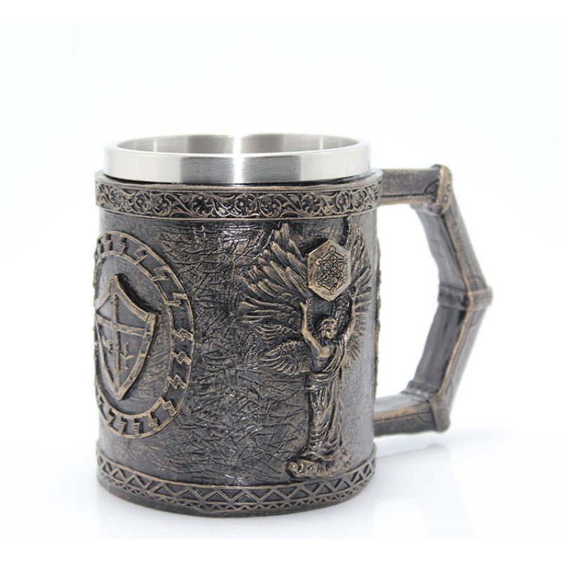 Efsanelerden fırlamış bir içki deneyimine hazır olun! "Koruyucunun Kadehi", hem savaşçı ruhlara hem de fantezi dünyasının tutkunlarına özel olarak tasarlandı. Üzerindeki detaylı kabartmalar, kanatlı bir muhafız figürü ve kalkan sembolüyle güç, koruma ve kadim sırları simgeliyor. Paslanmaz çelik iç haznesi sayesinde içeceklerinizi uzun süre sıcak veya soğuk tutar, dış kısmındaki antik taş görünümündeki reçine kaplama ise zamana meydan okur.